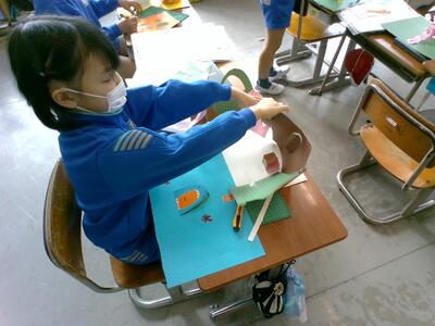 最初のうちは緊張していた子供たちも、少しずつカッターの扱いに慣れて、いろいろな形を切り取ることができるようになってきました。